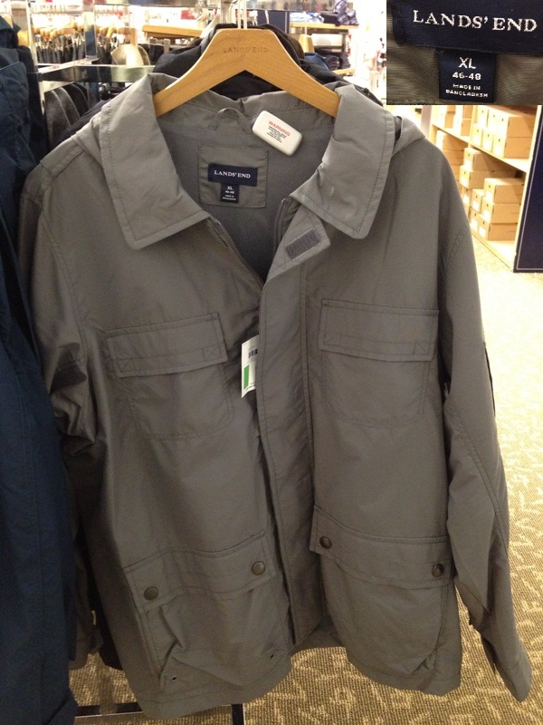 I was walking through Sears store at a mall and wanted to check out if Lands's End had any items made in Bangladesh as I never saw one before. Sure enough I found some and one of which was this jacket. A little history on Lands' End - they have always been a mail order catalog based company for years until the internet revolution started. Then they expanded their product lines through online. They are just not known in the US but also in the UK and Japan. Many of you may know that Lands's End were bought up by Sears few years back and that's why we see Lands' End section in all Sears stores now. However, they still maintain their root as one of the major catalog and online retailers.